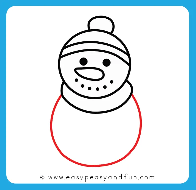 حالا وقتشه بدن چاق و بامزهی آدمبرفی رو بکشی. یه دایره بزرگتر زیر سرش بکش.