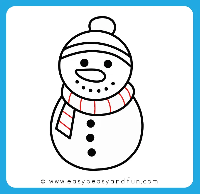 روی گردن آدمبرفی یه شال زمستونی بکش. هر شکلی که دوست داری — پشمی، راهراه یا ساده!
