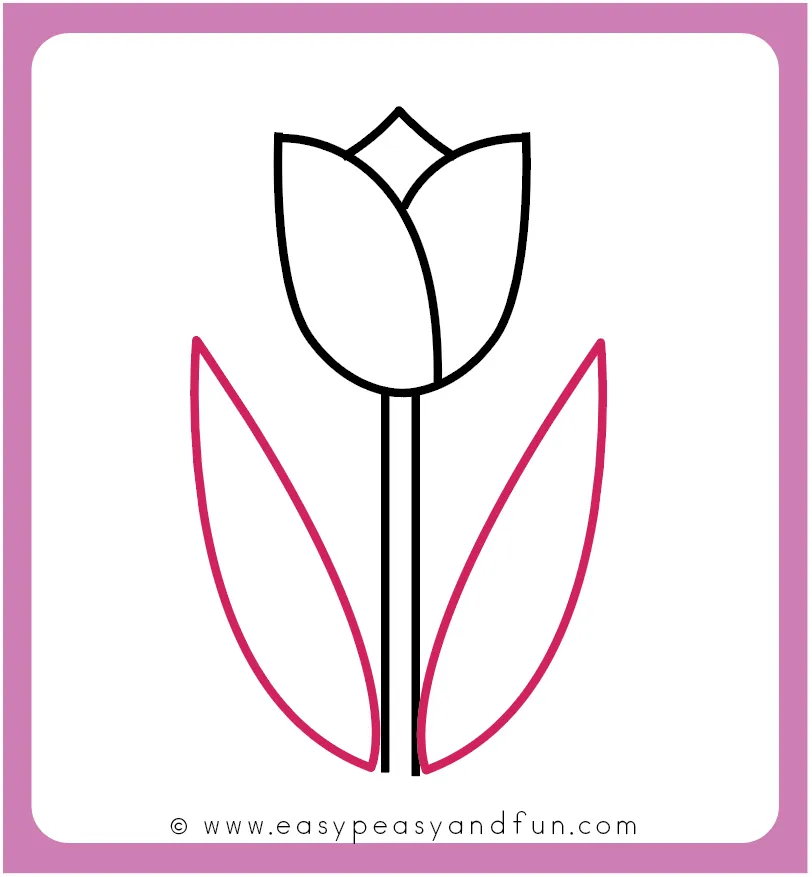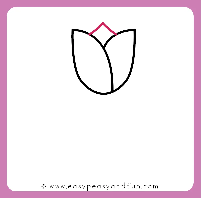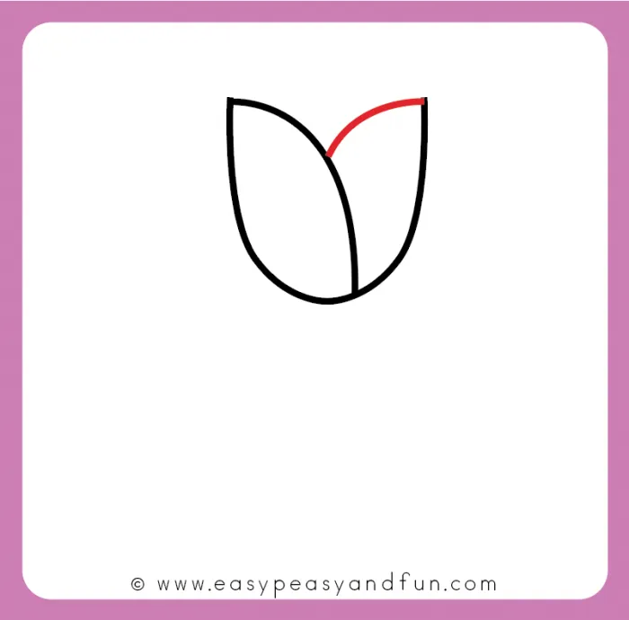 حالا آخرین گلبرگ را در وسط بالای گل بکشید تا شکوفهی لاله کامل شود.
