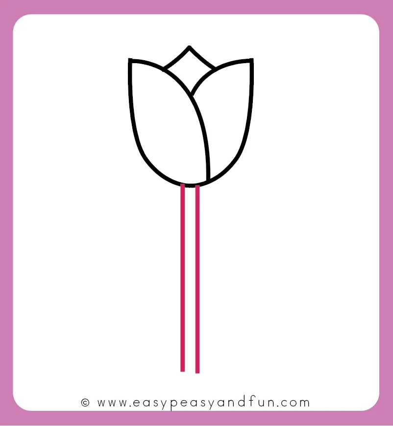 برای ساقه، دو خط صاف عمودی از پایین گل تا پایین صفحه بکشید.