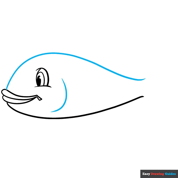 از زیر دهن یه خط خمیدهی بلند بکش تا پایین بدن ماهی رو نشون بده.