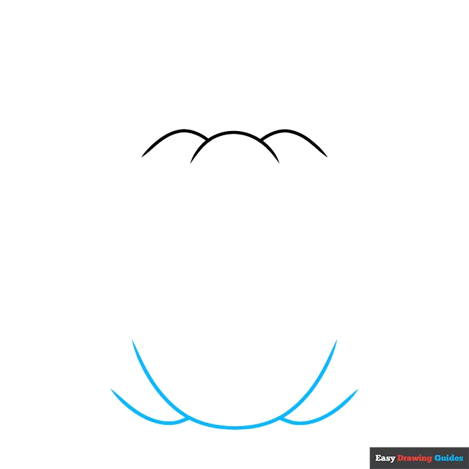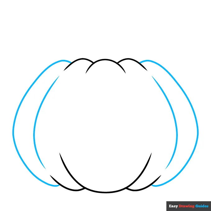 اول از همه سه تا خط خمیده روی هم بکش. اینا می‌شن بالای کدو و نشون می‌دن کدو پُر از شیار و برجستگیه.