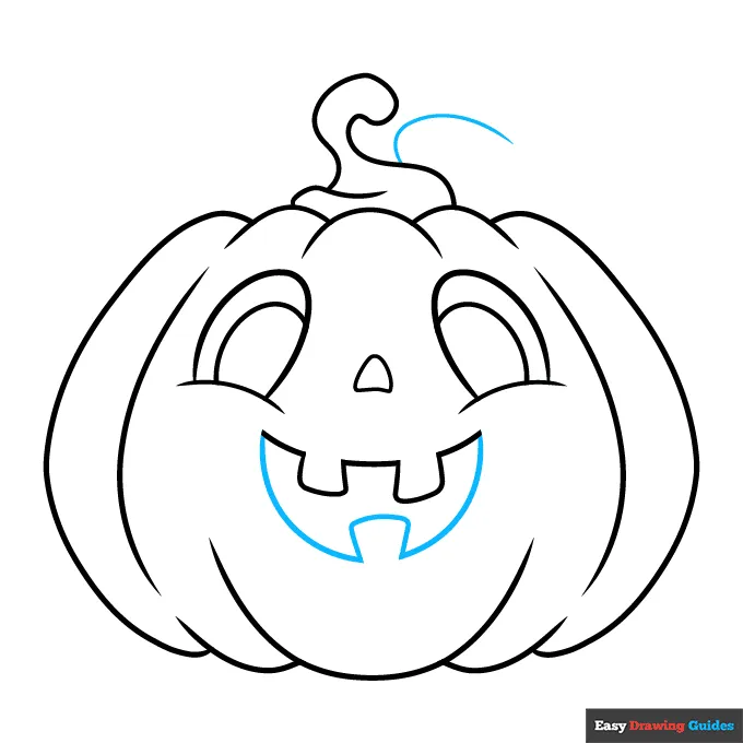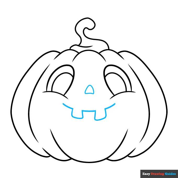برای اینکه کدوی هالووینی یا فانوسی درست کنی، یه مثلث کوچیک واسه دماغ بکش و با خط‌های خمیده، چهارضلعی‌های کوچیک واسه دندون‌ها درست کن.