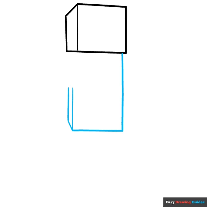 اول یه مربع بالای کاغذت بکش. بعدش سمت چپش یه خط مورب و دوتا خط صاف بکش تا شکل سهبعدی بشه، مثل یه جعبه.