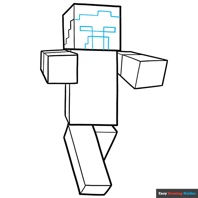 صورت زامبی رو با چهار تا مستطیل و یه شکل شبیه “L” برعکس بکش. بالاش هم چندتا خط صاف اضافه کن.