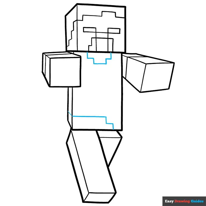 برای بدن، چندتا مستطیل کوچیک بکش که شبیه بلوکهای تتریس باشن. اگه سخت بود، اول مستطیل کامل بکش و بعد اضافههاشو پاک کن.