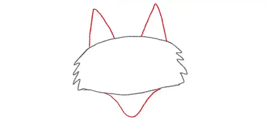 برای شروع آموزش نقاشی گرگ باید قسمت پهن سر نقاشی گرگ را با خط های صاف بکشید. بعد چند تار مو به دو طرف سر اضافه کنید.