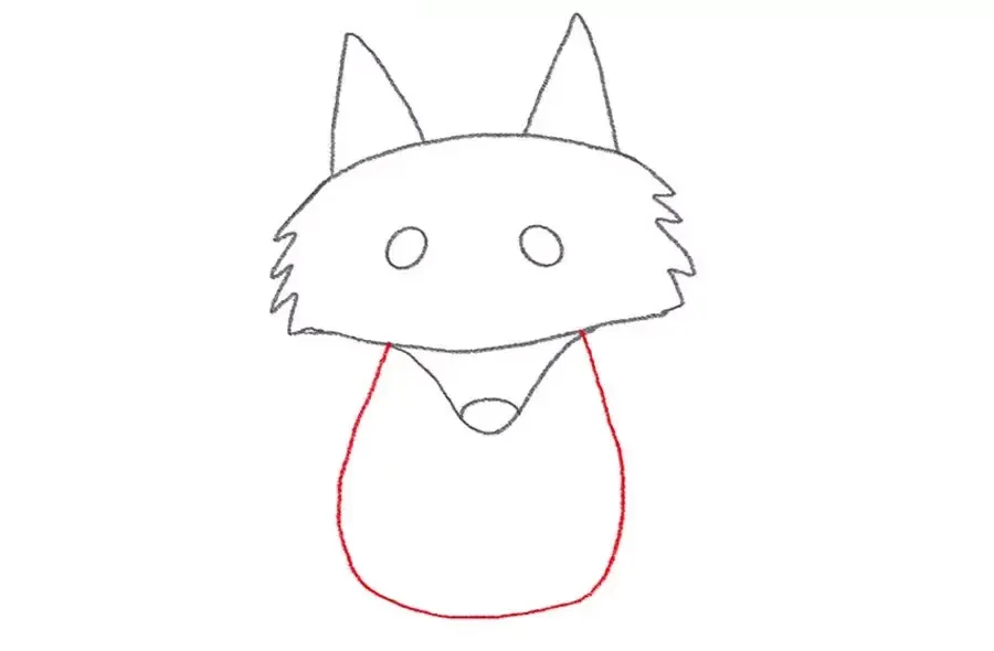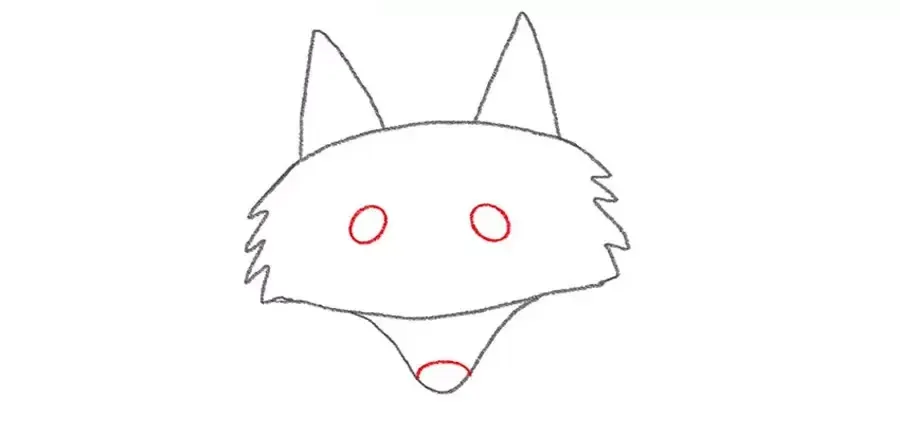 برای کشیدن چشم های نقاشی گرگ کودکانه دو بیضی روی صورت او نقاشی کنید. در این مرحله می توانید بینی را هم پایین پوزه بکشید.