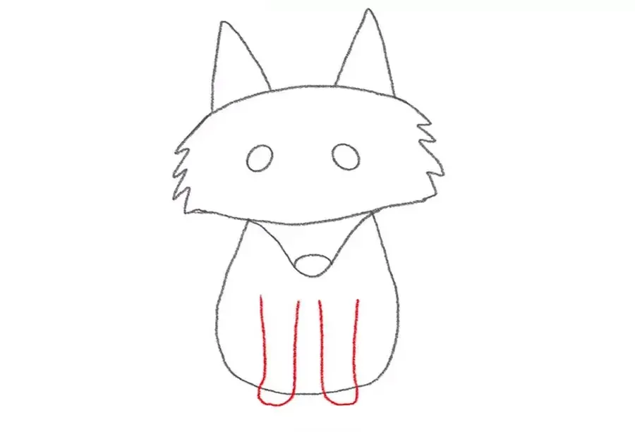 حالا در این مرحله از نقاشی گرگ ساده باید پنجه های او را بکشید. دو پنجه کوتاه کوچک کنار هم نقاشی کنید.