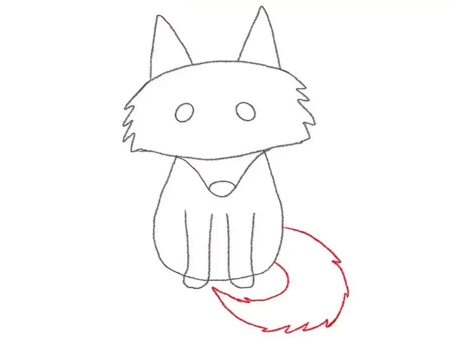 یک دم کرکی که سمت جلوی بدن چرخیده شده است، کنار بدن آموزش نقاشی گرگ بکشید.