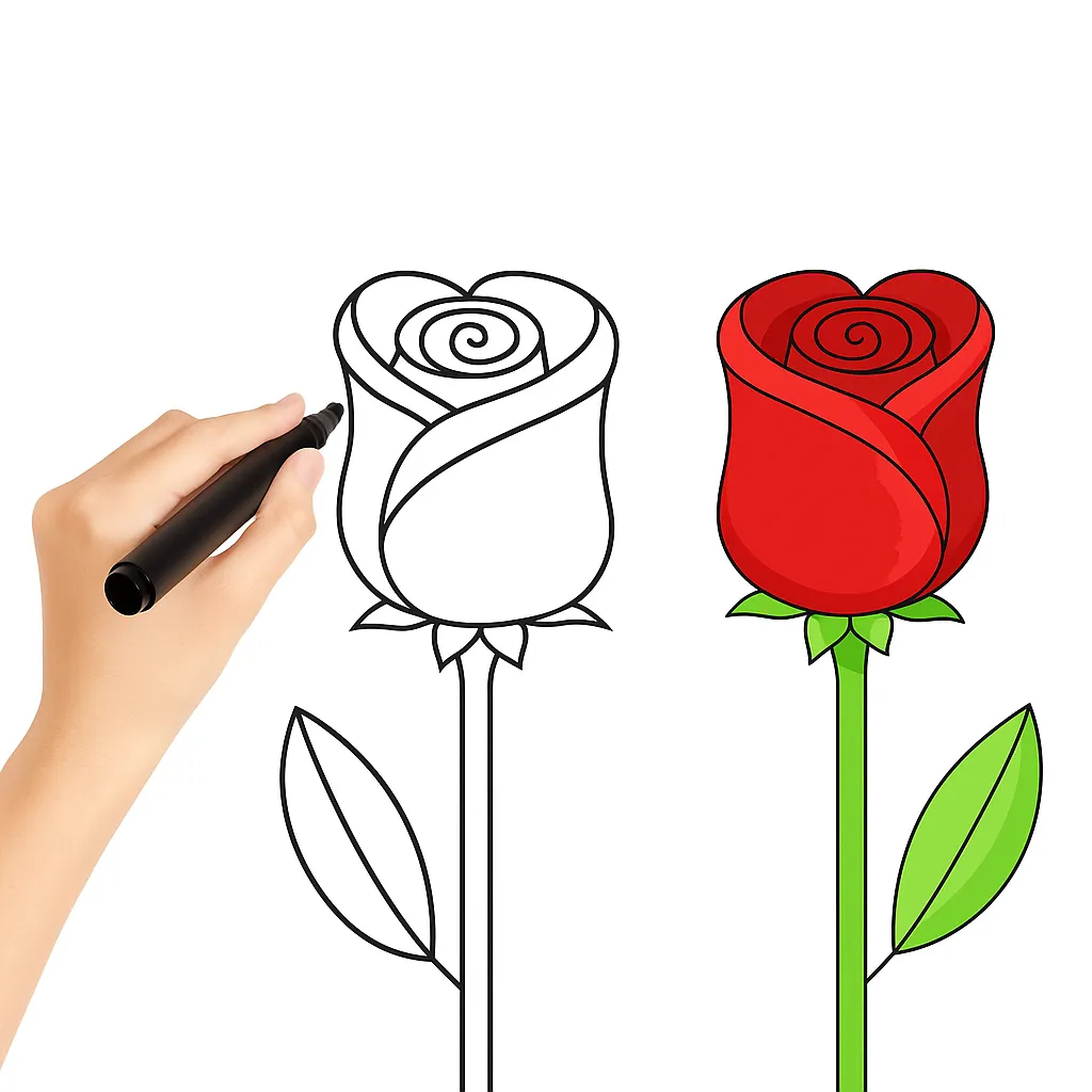 اینتین – در این آموزش ساده و گامبهگام، یاد میگیری چطور فقط با چند شکل ابتدایی، یک گل رز حرفهای طراحی کنی. این روش مخصوص کودکان و مبتدیهاست و نیازی به مهارت خاصی در نقاشی ندارد.