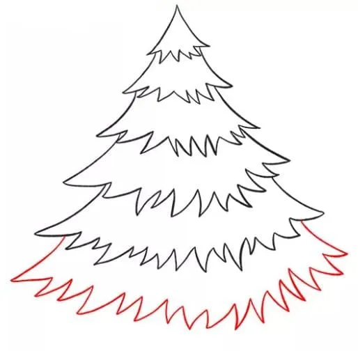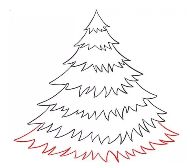 مرحله ۷: این آخرین طبقهی برگها درخت کاجه! عجله نکن و با دقت اونو بکش!