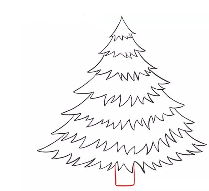 مرحله ۸: حالا نوبت تنهی درخت کاج رسیده! کشیدن اون خیلی راحته!