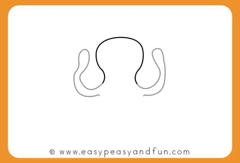 از دو انتهای شکل U، دو خط منحنی مانند پرانتز باز و بسته بکشید تا شکل سر کاملتر بشه.