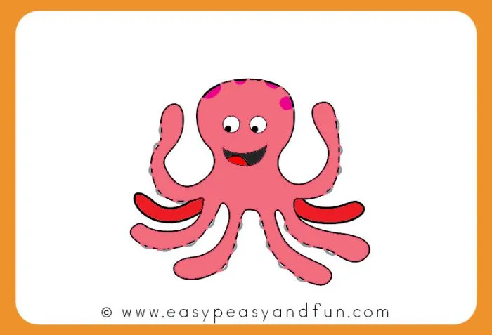 در آخر با رنگهای دلخواهتان — مثلاً صورتی، بنفش یا آبی — اختاپوس را رنگ کنید.
