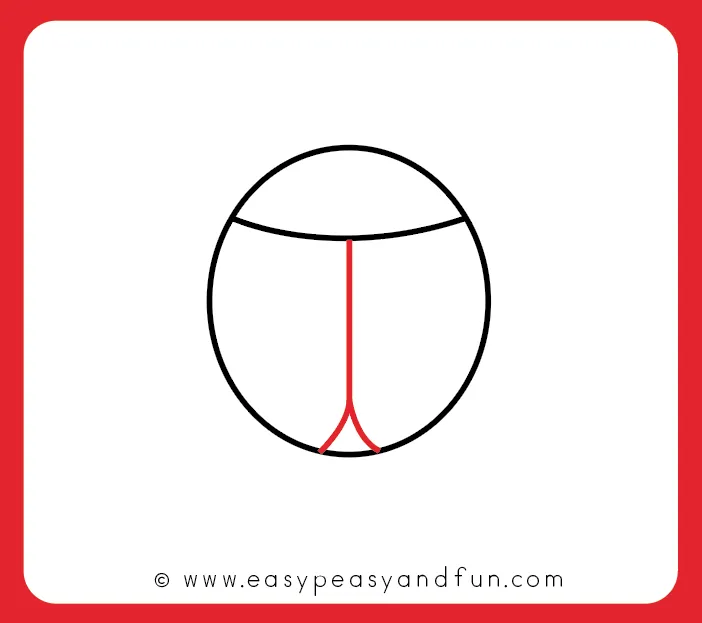 یک خط منحنی از سمت راست به چپ بکشید تا بالهای کفشدوزک مشخص شوند.