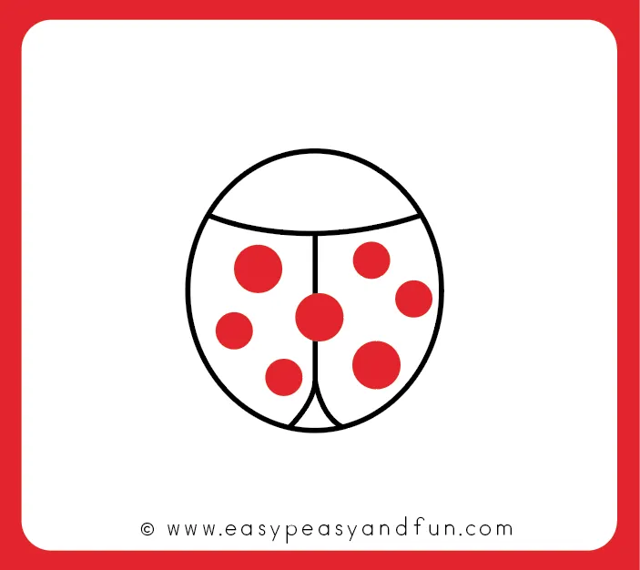 روی بدن کفشدوزک نقطههای سیاه بکشید. معمولاً کفشدوزکها ۷ خال دارند (۱ خال وسط و ۳ تا در هر بال)،