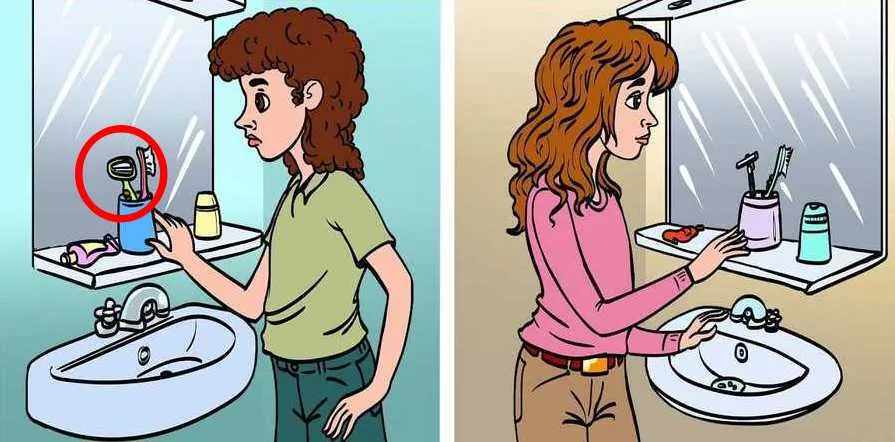 اگر به تصویر دقت کنید، در سمت چپ یک تیغ زنانه را میبینید که نشاندهنده این است که فرد سمت چپ، زن است و تیغ مردانه در سمت راست هم نشان میدهد که فرد سمت راست، زن نیست.