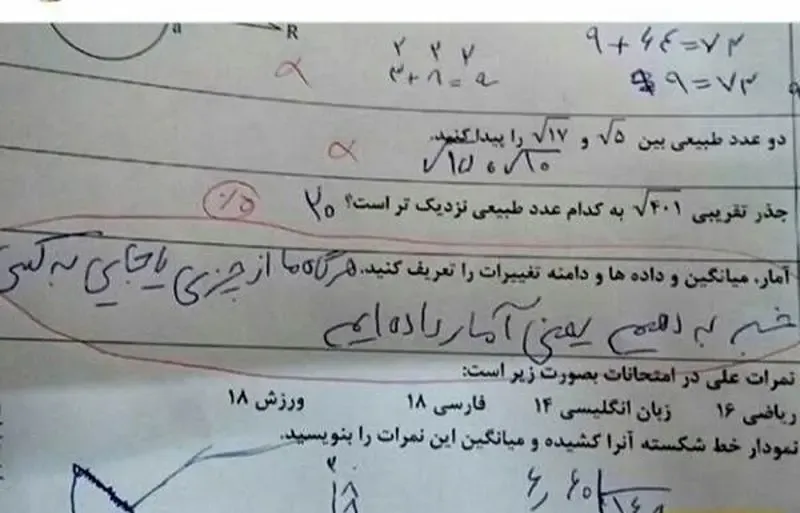 در رویدادی جالب، یکی از دانش آموزان با پاسخ طنزآمیز خود به یک سوال ریاضی توانست توجه بسیاری را به خود جلب کند. این دانش آموز در پاسخ به معنای “آمار” نوشت:
