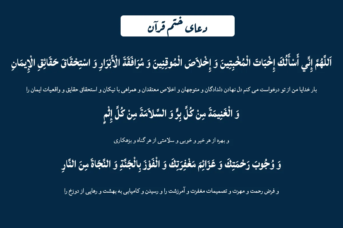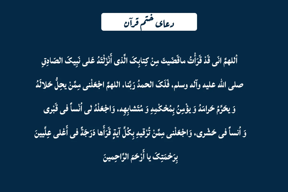 امام صادق (ع) در هنگام ختم قرآن این دعا را می خواندند: