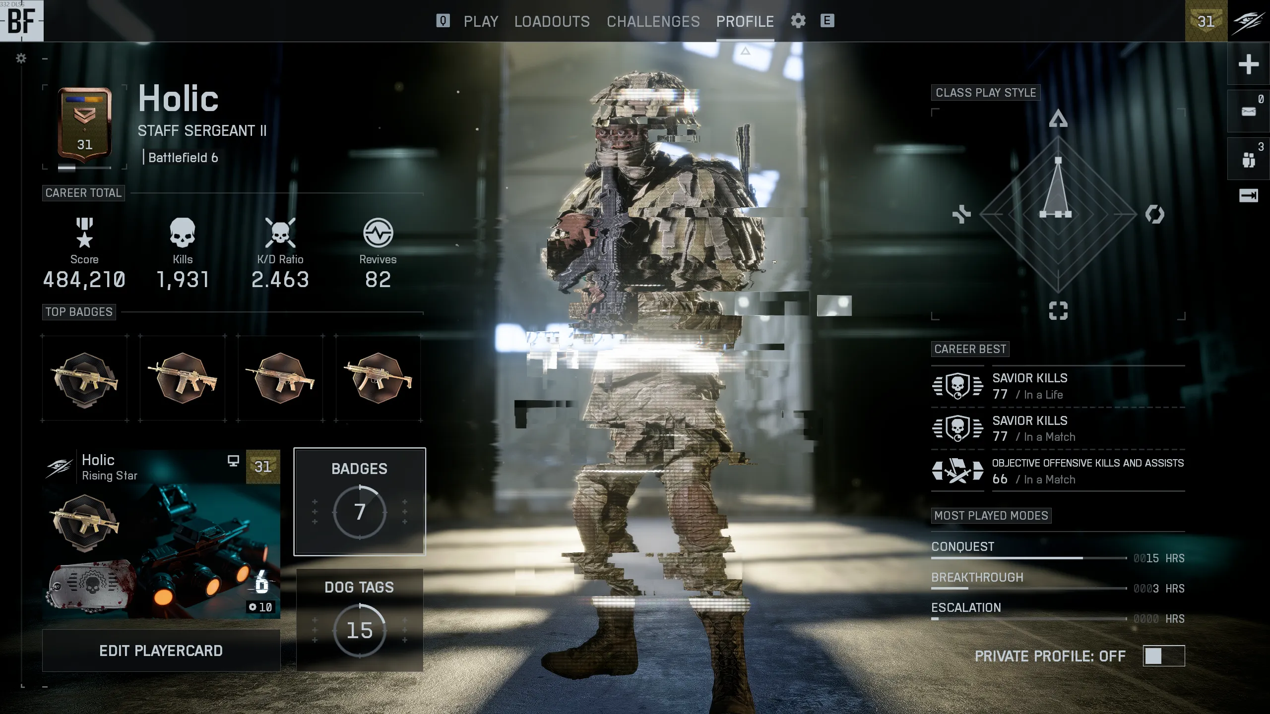 اما Battlefield 6 اومده تا این داستانو تموم کنه. EA یه بخش جدید به اسم Profile گذاشته که همهی آمار مهم بازیت رو یهجا نشون میده