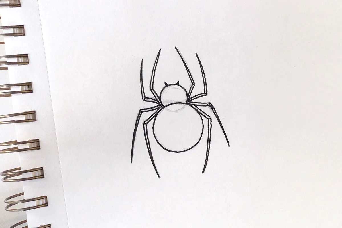۱. کشیدن طرح کلی بدن نقاشی عنکبوت