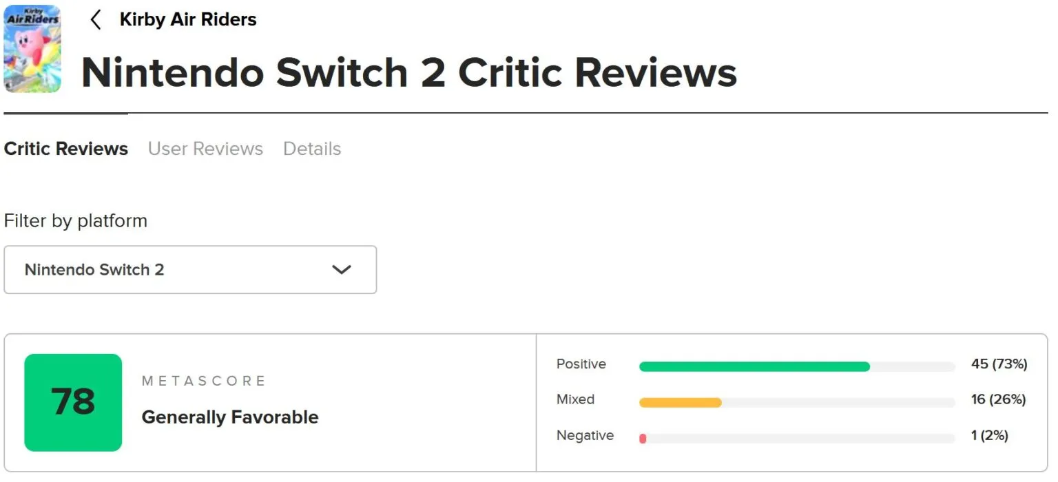 با نقدها و نمرات بازی Kirby Air Riders در حال انتشار هستند. با بخش نتیجه‌گیری برخی از بررسی‌ها همراه باشید.
