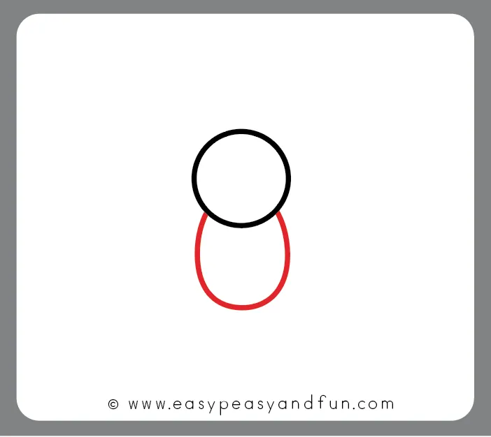 زیر دایره، یک بیضی قرار بده تا بدن خفاش شکل بگیرد. بیضی را کمی کشیده و متناسب با دایره سر قرار بده.