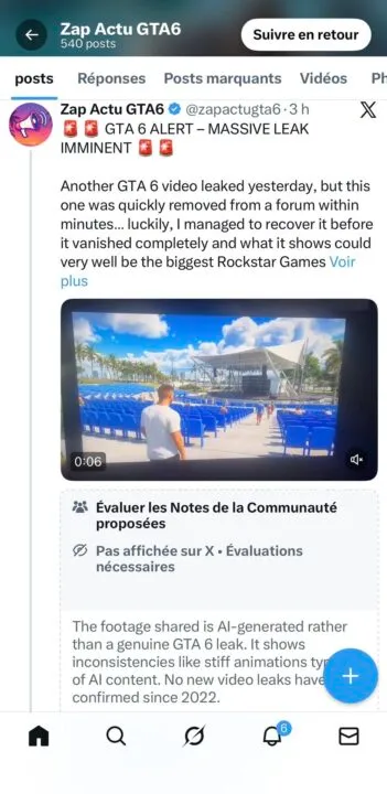 در روزهای اخیر شبکه اجتماعی X شاهد انتشار ویدئوهایی به‌عنوان «لو رفتن گیم‌پلی GTA 6» بوده است. این ویدئوها به سرعت وایرال شدند، اما سازنده آن‌ها با نام کاربری Zap Actu GTA6 اعتراف کرده که همه این کلیپ‌ها با استفاده از هوش مصنوعی ساخته شده‌اند و هیچ ارتباطی با محتوای واقعی بازی ندارند.