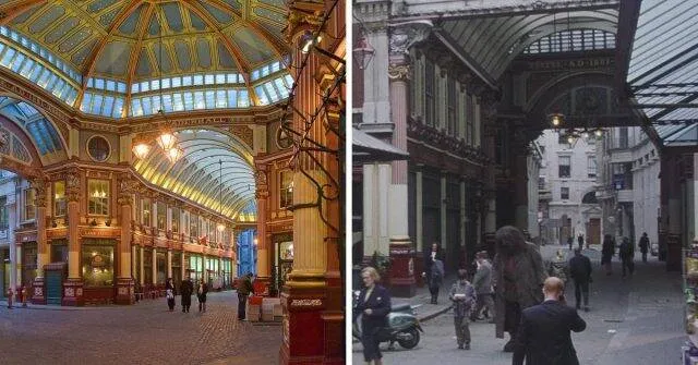 بازار ویکتوریایی لیدن‌هال در لندن محل فیلم‌برداری بخش‌هایی از کوچه دیاگون و ورودی مهمان‌خانه‌ی Leaky Cauldron در فیلم اول است.