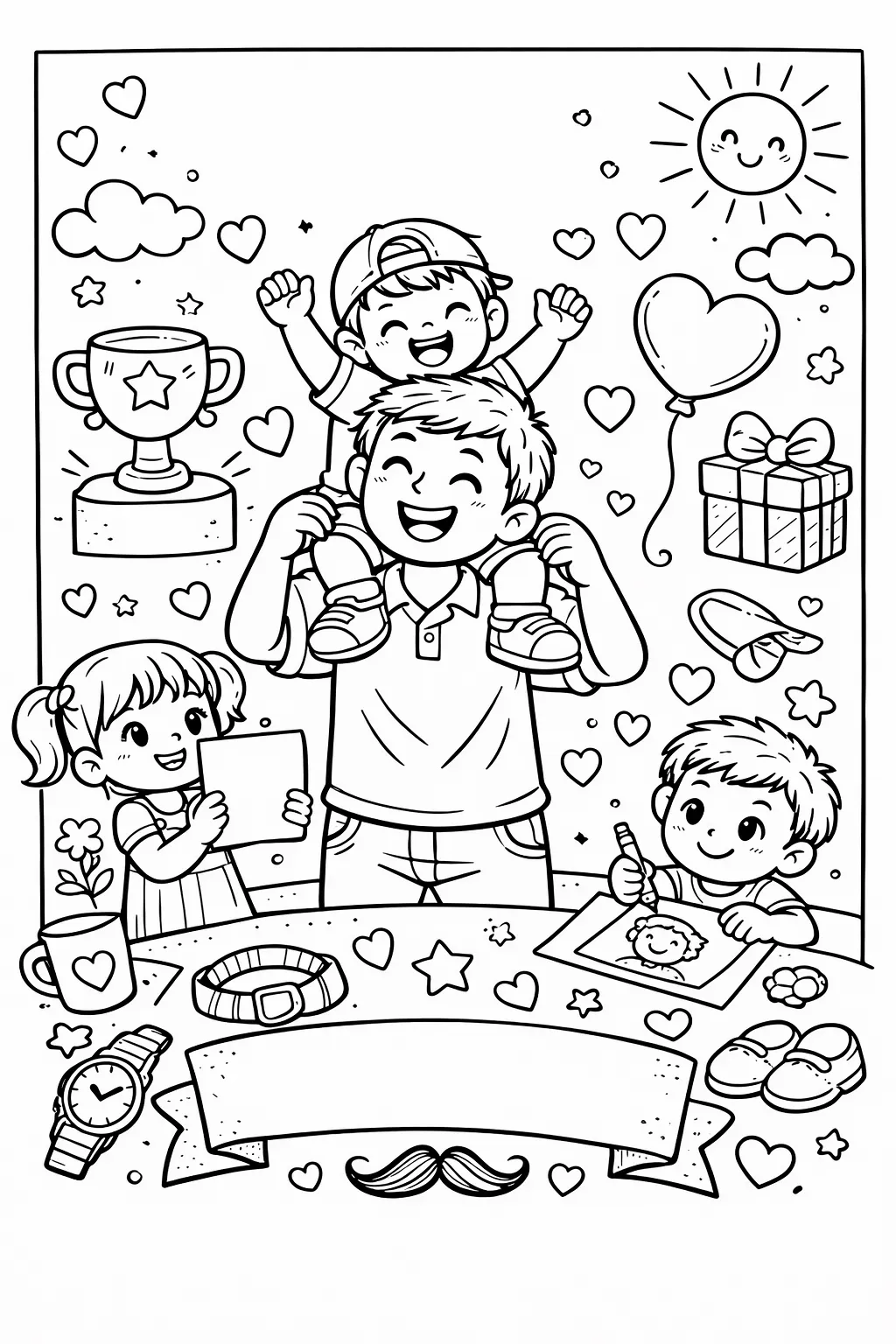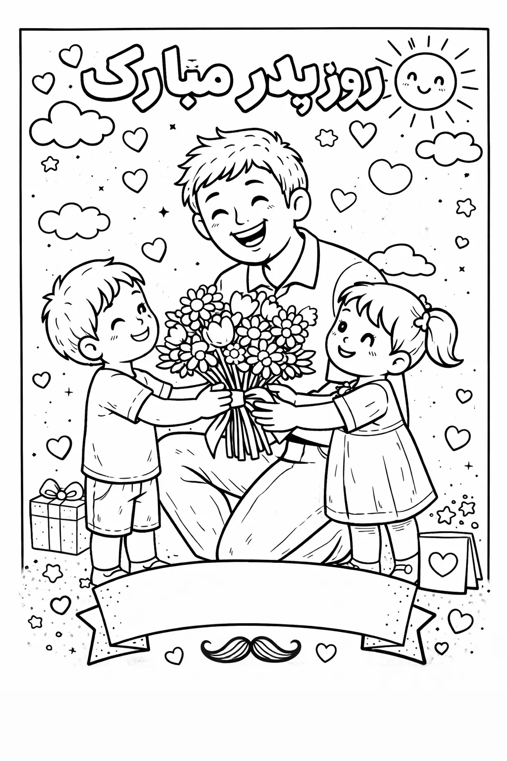 نقاشی روز پدر کودکانه با طراحی ساده و رنگارنگ برای رنگ آمیزی بچهها. طراحیهایی جذاب که کودکان را به خلق لحظاتی شاد و رنگی دعوت میکند.