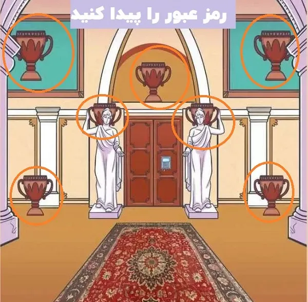 رمز باز کردن در، عدد هفت است، زیرا هفت گلدان در اتاق وجود دارد و این تعداد گلدان یکسان در یک اتاق تصادفی نیست!